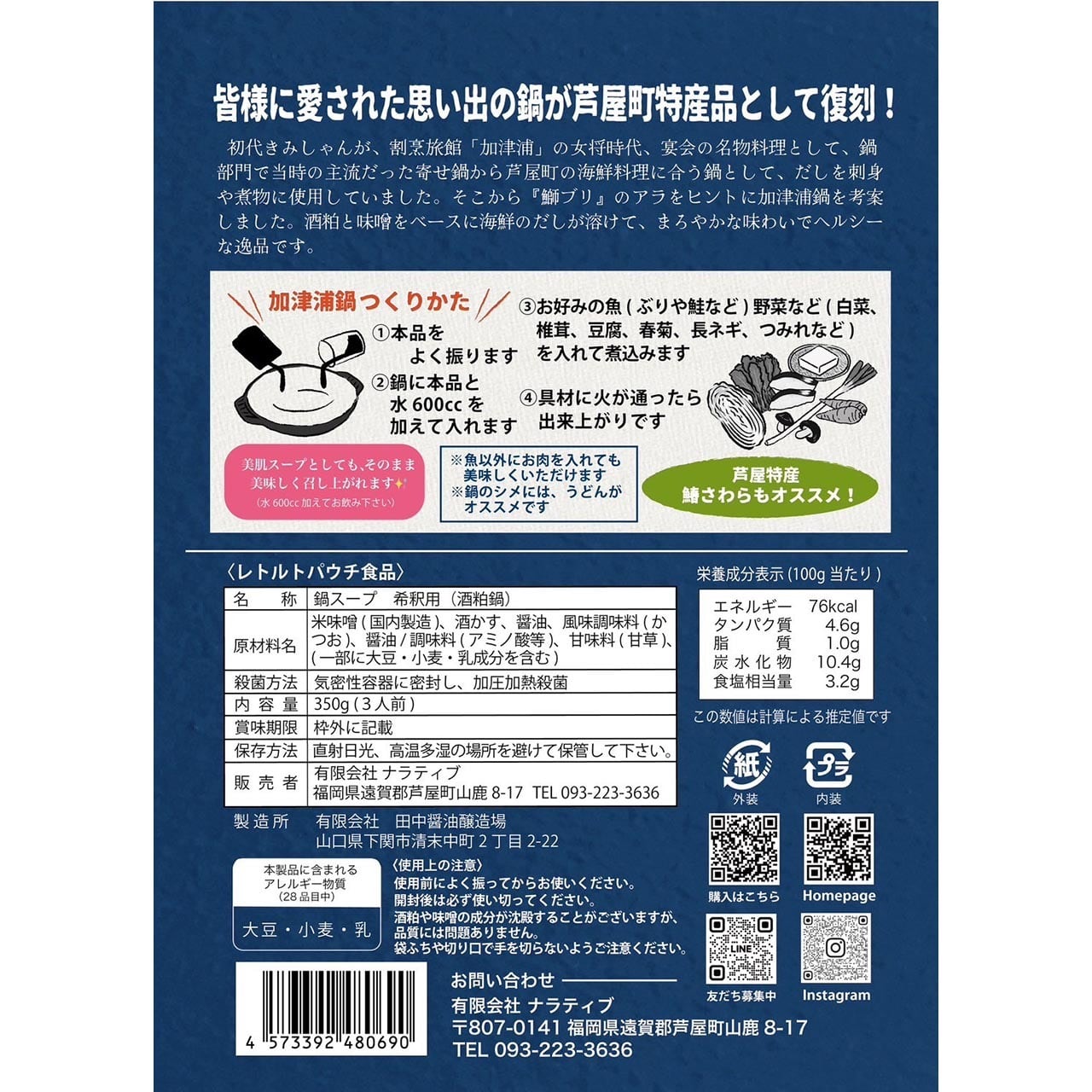 【復刻】福岡芦屋加津浦鍋「酒粕海鮮鍋つゆ」 レトルト2個パック【九州圏内(福岡県除く)地域送料込み他送料別途】