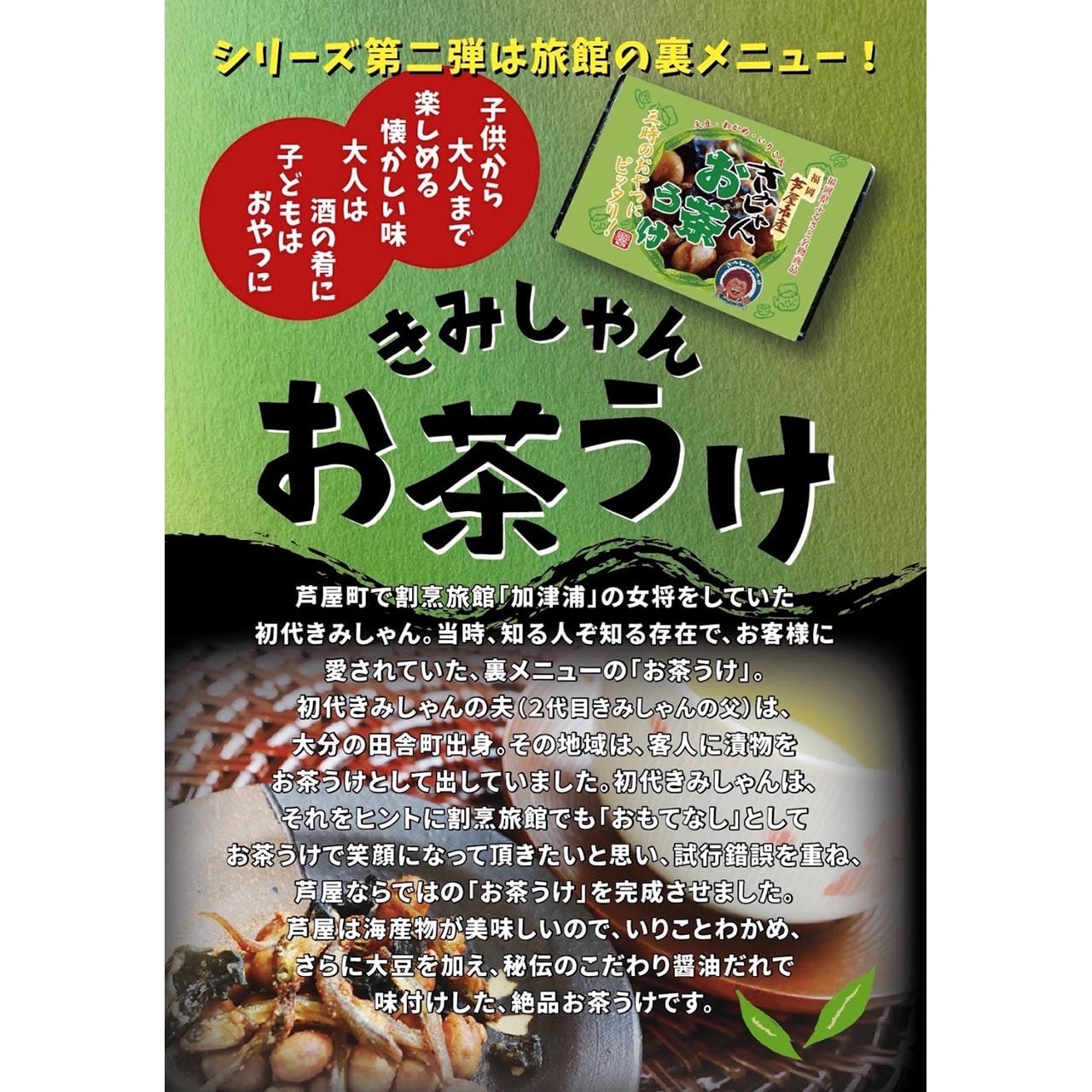 きみしゃんシリーズ2点(きみしゃんいりこ、たまごかけ昆布、お茶うけの中からお選びください)と【復刻】ひじき釜めし1点、【復刻】福岡芦屋加津浦鍋「酒粕海鮮鍋つゆ」1点の計4点となります。