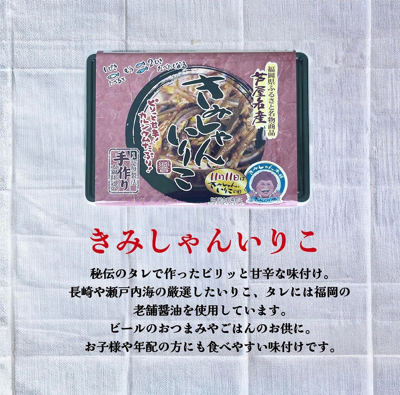 - きみしゃんシリーズ(きみしゃんいりこ110g、きみしゃんたまごかけ昆布150g、きみしゃんお茶うけ130gの中からいずれか2点をお選びください)
